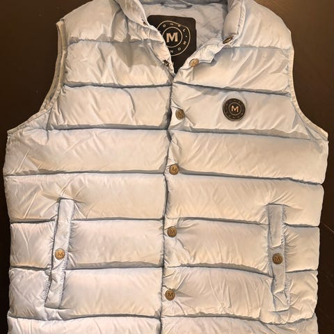 Helt ny vest som kun er prøvd, men lappen ble tatt av litt for kjapt. Dobbel glidelås på vesten, følger med ekstra trykknapp.
