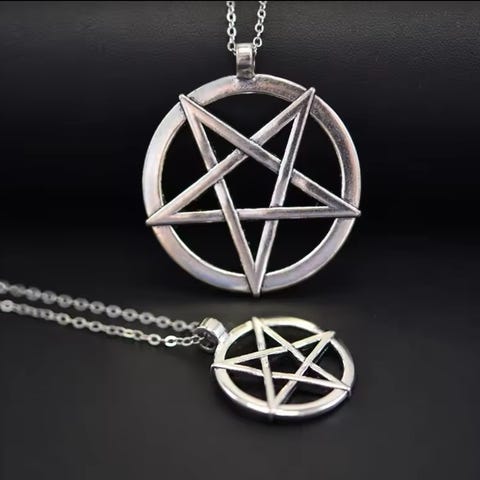 Selger en fin Pentagram okkult tinn fingerkloledd ring i størrelse ca 22 øverst i ringen, mens den nedre delen kan stilles.