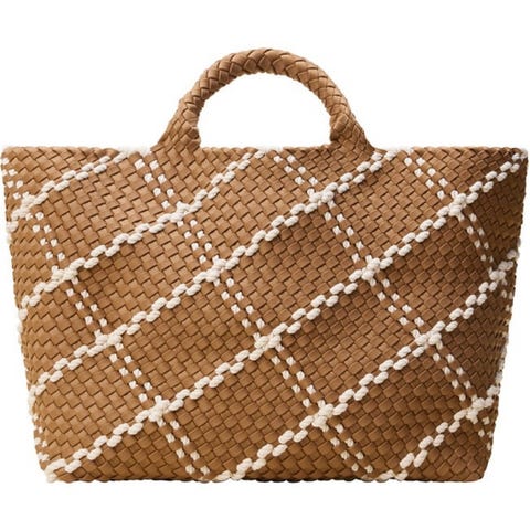 Strøken Kate spade veske i rosa og rosa-rød. Kjøpt på Zalando: kate spade new york HIGH TIDE STRIPED CROCHET RAFFIA MEDIUM TOTE ladybug