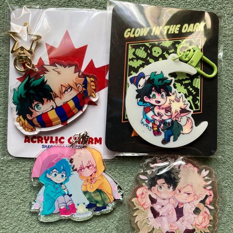 Selger en del buttons og nøkkelringer fra my hero academia.
