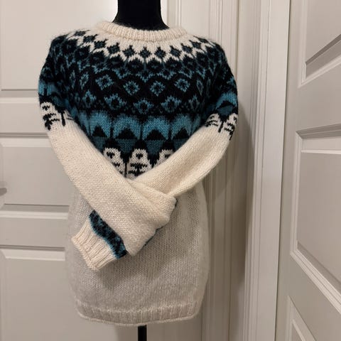 Hjemmestrikket Matoaka genser fra 'Villmarksgensere'.