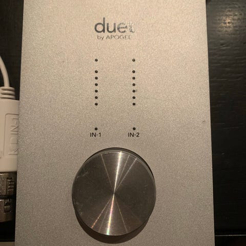 Apogee Duet 2 lydkort til datamaskin selges pent brukt. Dette må jo være et av de minste lydkortene der ute ... Stereo jack ut og stereo xlr/jack inn.