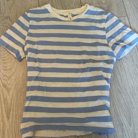 Den er ikke synelig brukt, xs t-skjorte med hvit og svart striper