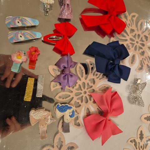 Tversoversløyfe, 11 cm, polyester, mørkeblå med lyse prikkar. To heimelaga tversoversløyfer, svarte følger med på kjøpet. Kr 55 + ev. porto. Eg bruker ikkje betalings-/sendingsløysinga Fiks ferdig