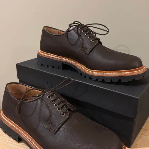 Øvredelen av skoen er laget av 2,5mm Chrome- xl lær fra Horween som er behandlet på den 'vrengte' siden.