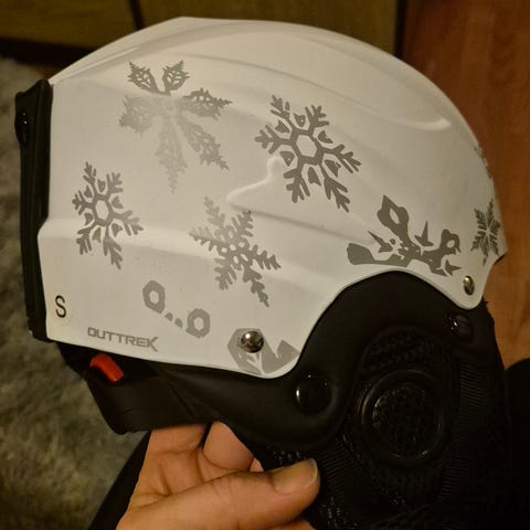 Det er feste til briller på baksiden, og man kan enkelt stille inn på størrelsen ved å dreier på en hjul bak på hjelmen.