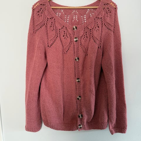 Lite brukt jakke selges. Strikket I air oh kid silk fra drops. 118 cm overvidde.en romslig L. 55cm lang.