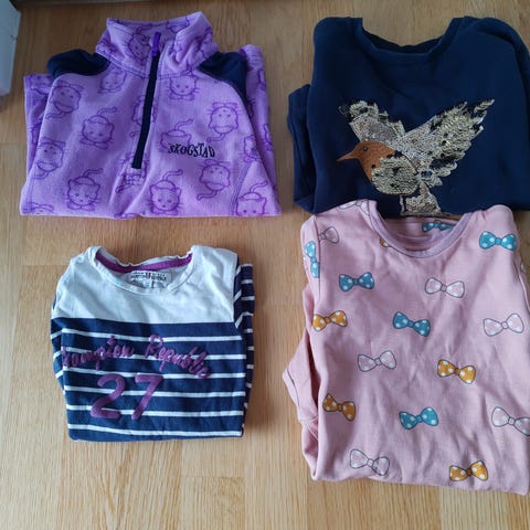 Pent brukte gensere og en hettejakke til jente. Merker som gullkorn, cubus, puma