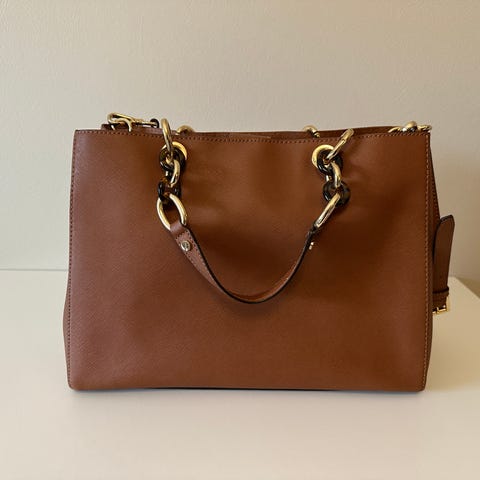 Fra Michael Kors, en elegant og funksjonell veske i 100% kuskinn. Vesken har dobbel glidelåslukking og magnetisk lukking for ekstra sikkerhet. Med kortspor og en justerbar skulderrem på 100-120 cm, er denne vesken både praktisk og stilig. Perfekt for deg som ønsker en sofistikert veske til både hverdag og spesielle anledninger. 100% Kuskinn. Mål: L 25 x H 16 x B 3 cm. Avtagbar og justerbar skulderrem. Brukt 1 gang. Nypris kr 1899,- Fin sommerveske. Kjøpt på Høyer.