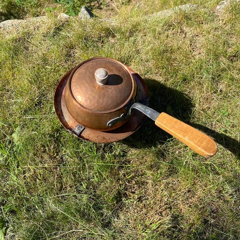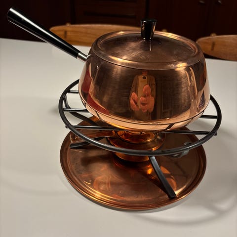 Fonduegryte i hamret kobber m 6 stk gafler - fra Spring -