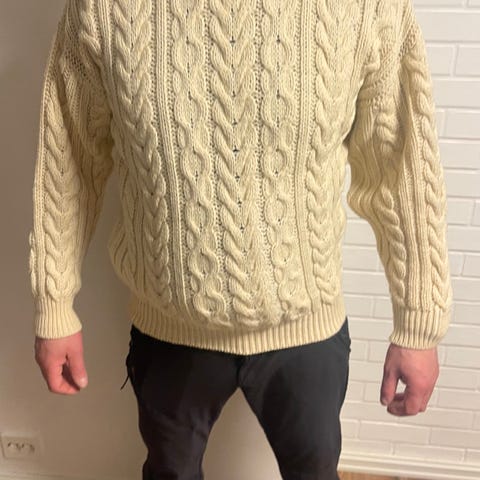 Pent brukt (ikke synlig brukt) marineblå ullgenser.