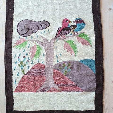 Vintage veggteppe/klokkestreng. Håndbrodert
