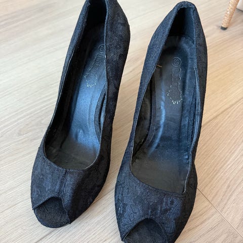 Svarte hæler, wedges, lite brukt