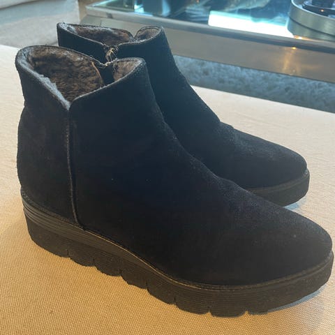 Kule og gode Laura Bellariva-sko, italiensk skomerke. Du føler deg velkledd både til hverdags og fest. Str 38,5. Dette er en uforet sko, men tykkelsen på sålen isolerer godt. Kostet over 2000kr ny. Litt vanskelig å få av noe flekker under på sålen, se bilde. Hentes Stjørdal, kan sendes.