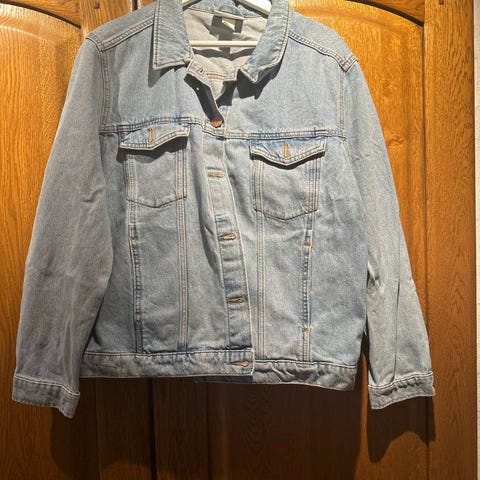 Veldig mørk blå jakke/frakk med glidelås, hette og lommer. Oversized look. Splitt i ermene. Veldig fin og behagelig på.
