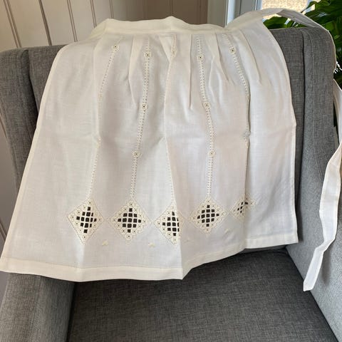 Forkle i lin med hardangerbroderi.