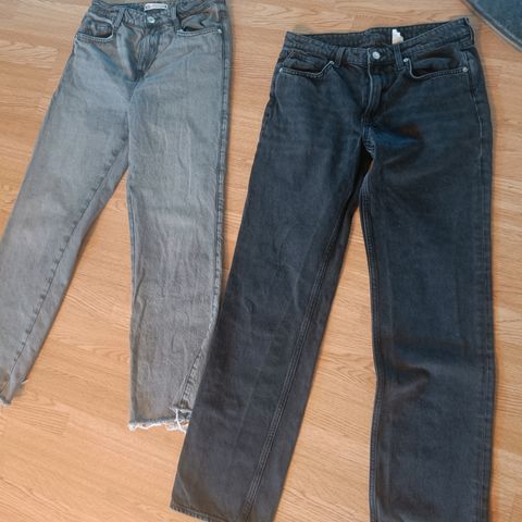 Gråbukse fra Jennifer st L 100kr og rose og hvit bukse fra HM st M 100kr.