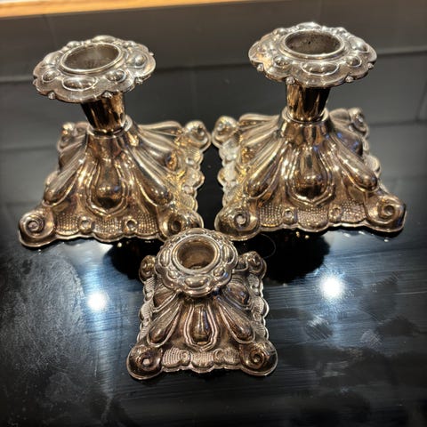 2 stk. lysestaker 21 cm høy, sølvplett England.