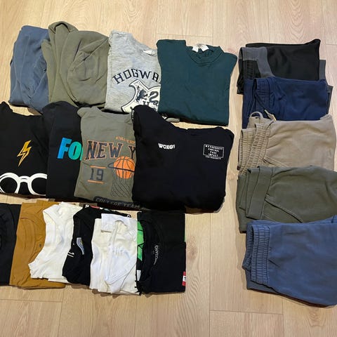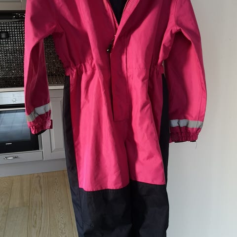 Buksen 134 str. er varm og i god stand, uten hull, men med noe slitasje foran. Jakken er varm og passer godt sammen med buksen, i én størrelse større. Må hentes.