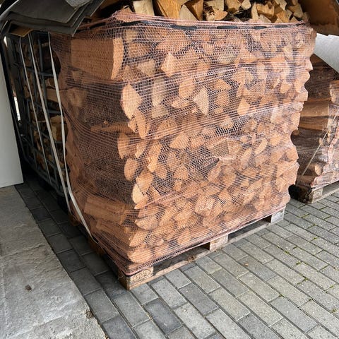 Vi selger tørr norsk blandingsved, stablet i 1000liter sekker. Alt er kappet i 30cm.