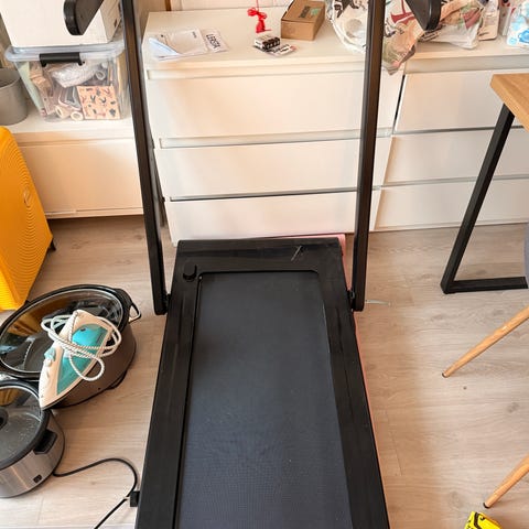 Walkpad med stigning. Inkl beskyttelse-matte. Lett og legge sammen og plassere vekk. Det er også hjul på den så den er lett og flytte når den står på gulvet. Perfekt for alle også for de som har en liten leilighet som ikke har plass til og ha det stående i stuen. Da er den utrolig lett og plassere rett bak en dør eller under en seng osv. kjøpte denne i god tro om at eg ville prøve noe nytt, men endte opp med og ikke bruke den en eneste gang. Derfor ønskes denne solgt. Og selger den derfor billigere enn hva eg kjøpte den for. Selv kjøpte eg den for 5200 kr men det var med beskyttelse-matten til gulvet i den prisen. Har alt av det som fulgte med når eg kjøpte den. Bruksanvisning, olje til løpe-bånd og verktøy...Så den som kjøper denne tredemøllen vil få en ny, ubrukt og billig maskin 😊 Pris kan også diskuteres