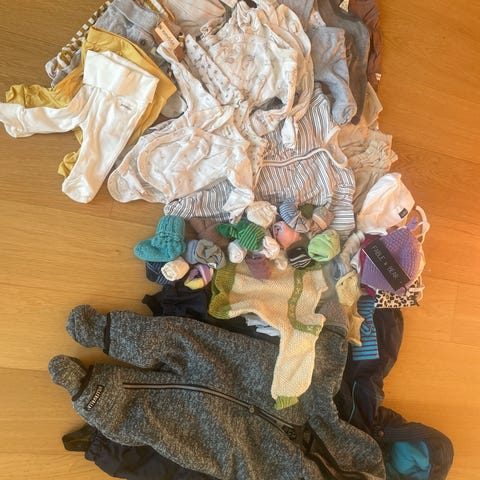 Sommerpakke inneholder: Solbriller, sokker, bukser, t-skjorte-shorts, genser, bodyer. 200 kr
