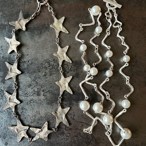 Selger et vakkert smykke fra Biche de Bere som er sølvbelagt og har perler som mest sannsynlig er falske, men likevel smykket er enestående og fra en kjent designer.