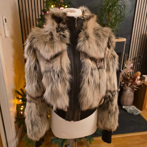 Ekte pels, pelsen kan tas ut av jakken, vaskebjørn pels. Brukt 2 ganger