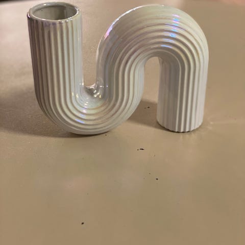 Minivase med mønster fra Hm Home. En oval liten glass vase med asymmetrisk prikkemønster. Mål: H 9 x B 6 cm. Pent brukt.