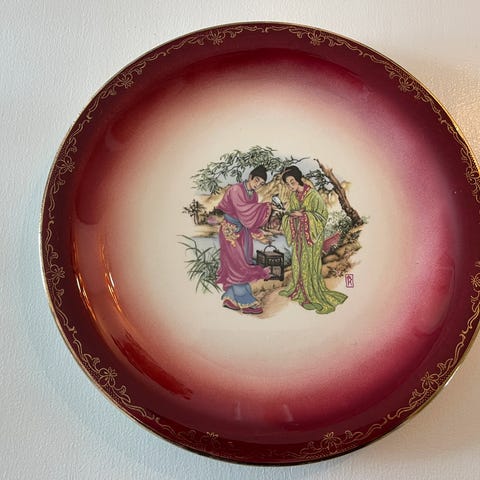 Fat / tallerken med orientalsk mønster og gull bord rundt kanten. Diameter 24 cm.