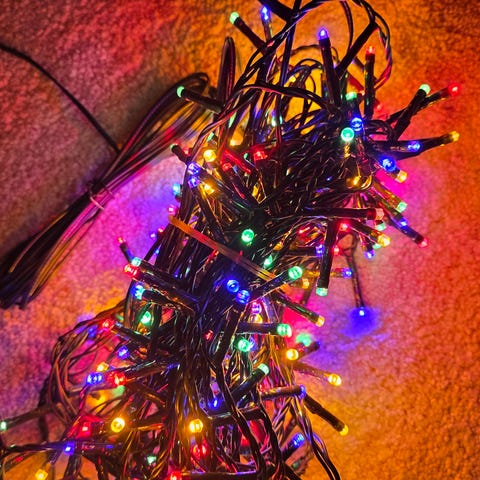 Et par LED-lykter med rødt og blått lys. Passer utmerket i en russebil, på discorommet hjemme eller som en passe enerverende julebelysning rettet mot naboen.