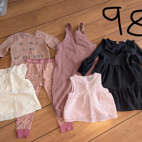 Selger pene kjoler (bomull, ull), jakker og gensere i størrelse 92.