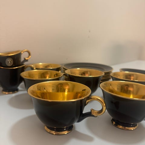 4 single kopper til Stavangerflint mokkaservise sort/gull