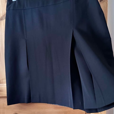 AJ Armani sort kort skjørt. 97% bomull og 3% elastin. Str 40/42. Glidelås i siden. Rundt livet ca 82 cm. Lengde ca 59 cm. Nesten ikke brukt