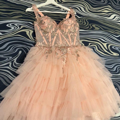 Benyttet som ballkjole 8. klasseball. str 34/36. Nydelig kjole, passer også fint til andre fester og festligheter.