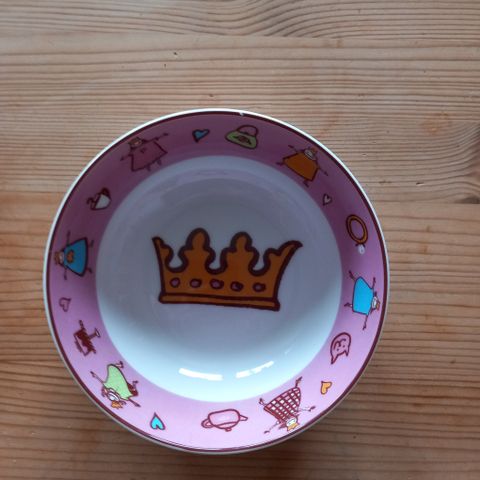 "Koselig barneservise med prinsessemotiv i porselen. Settet består av kopp, skål og asjett,. Oppvaskmaskinsikkert."
