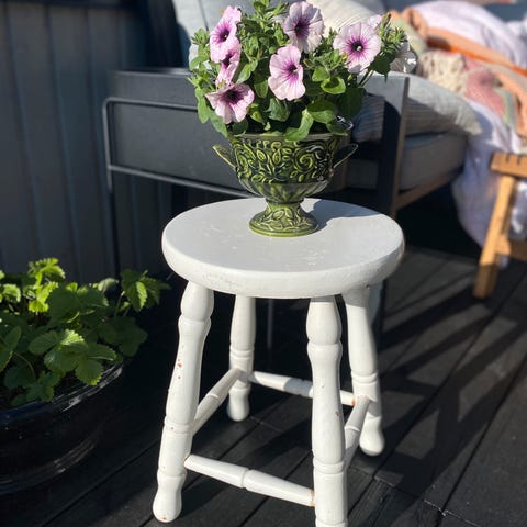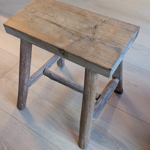 #melkekrakk, bondekrakk, nattbord, bad, krakk, bord, trestol, stol, fjøs, fjøskrakk, taburett, vintage retro massiv furu barnerom lekerom, plantebord, avlastningsbord, baderom #interiør gammel furumøbel furukrakk