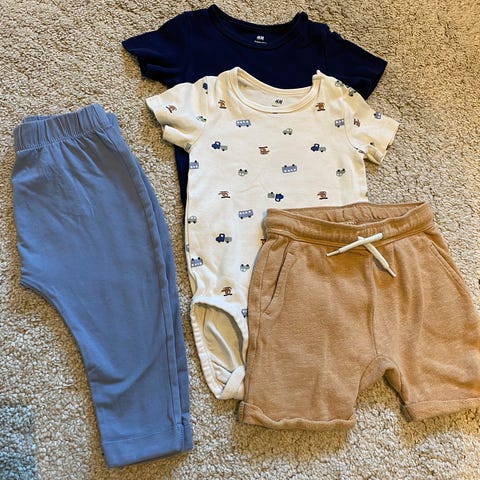 Liten sommerpakke: 2 stk. shorts og en romper. Fra HM. Pent brukt. Ingen synlige merker.