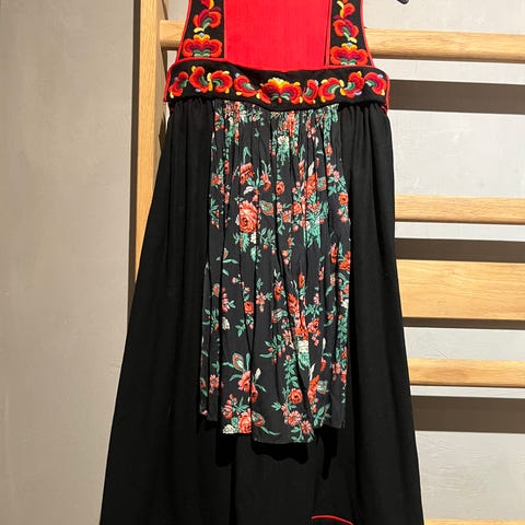 Passer, avhengig av høyde/str 8-12 år. Lengde 116. Ca 80 cm rundt bryst.