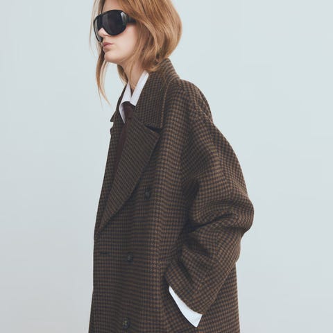 Skorsteinskrave. Stoff med ull. Tung struktur. Kun fôr. Lukking forran. Rett design. Lang. V-hals med slag. Langt erme. Avtagbart belte. Glidelåslommer i sidene. Knappelukking på forsiden. Innvendig fôr. Den lyseblå fargen er eksklusiv online. Tilgjengelig Plus.