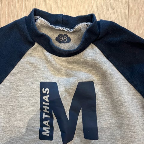 Ubrukt matheogenser i behagelig, dype farger selges. Den er strikket i merinoull som ikke skal klø. Fargekombinasjonen kan passe både gutt og jente!