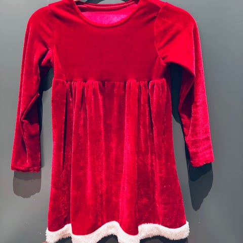 Selger lite brukte kjoler i str. 122-128 til samlet pris på 400 kr eller står pris under hver bilde. Kjole i vinrød med gullhjerter er solgt.