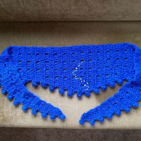 Fint turkist heklet skjerf i turkis, sjal, selges.