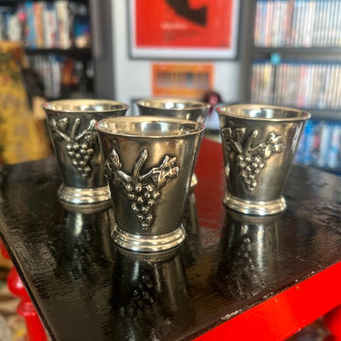 To drikkebegere i 94% tinn. Nibelungen. De har tre forskjellige vikingmotiv rundt om.