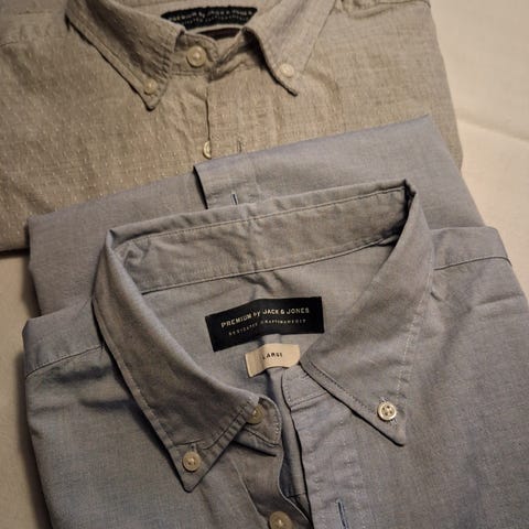 Bilde 1) Grå skjorte fra Jack&Jones, str L. Brukt få ganger. Pris 100,-