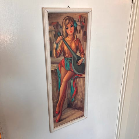 Et retro vintage Lien Mei Big Eye girl. gitar jente. 25 cm lang og 10 cm bred.