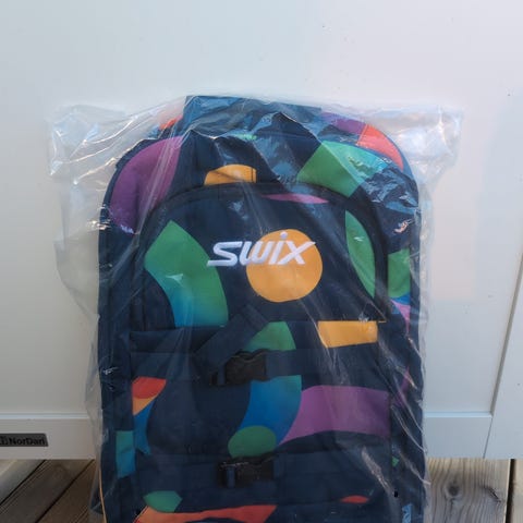 Flott sekk med mange rom fra VM på ski 1997. Lite brukt. Ikke synlig. Mange praktiske rom. Kan brukes som ryggsekk eller skulderveske. Mål: 50×35 cm. Drikkeflaske.