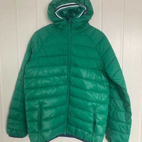 Jakken er pent brukt, men har noen små flekker som ikke går bort i vask.