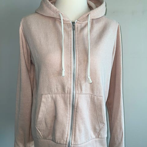 Fin, peach-rosa eller beige hettejakke. Den har noen mini-flekker på forsiden, men skal prøve å få dem av igjen selv. Ellers får man de nok av om man bruker noen smarte triks. Ellers i veldig god stand🤍