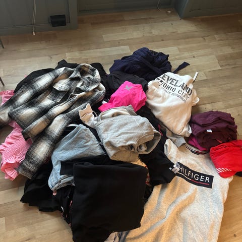 Pent brukte klær. Mange av klærne er nye, aldri brukt, men vasket. Feks de fleste kjolene. Ellers ingen skader som jeg kan finne. Mange av klærne er også bare prøvd på, men ikke brukt.